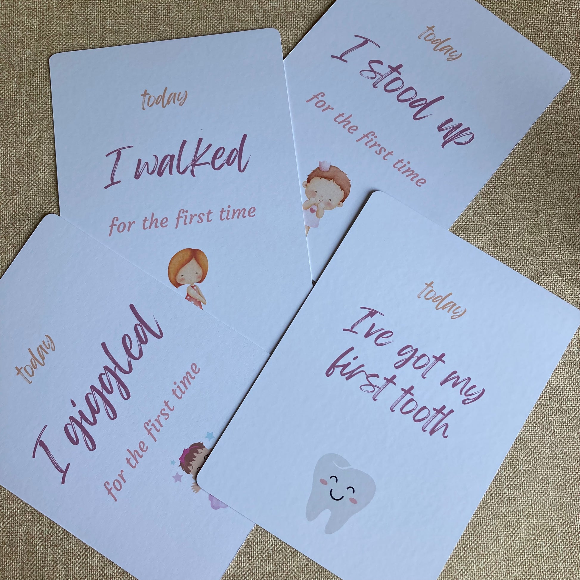 Our milestone cards are printed with non-toxic inks on smooth-edged cardstock, making them completely safe for little hands.