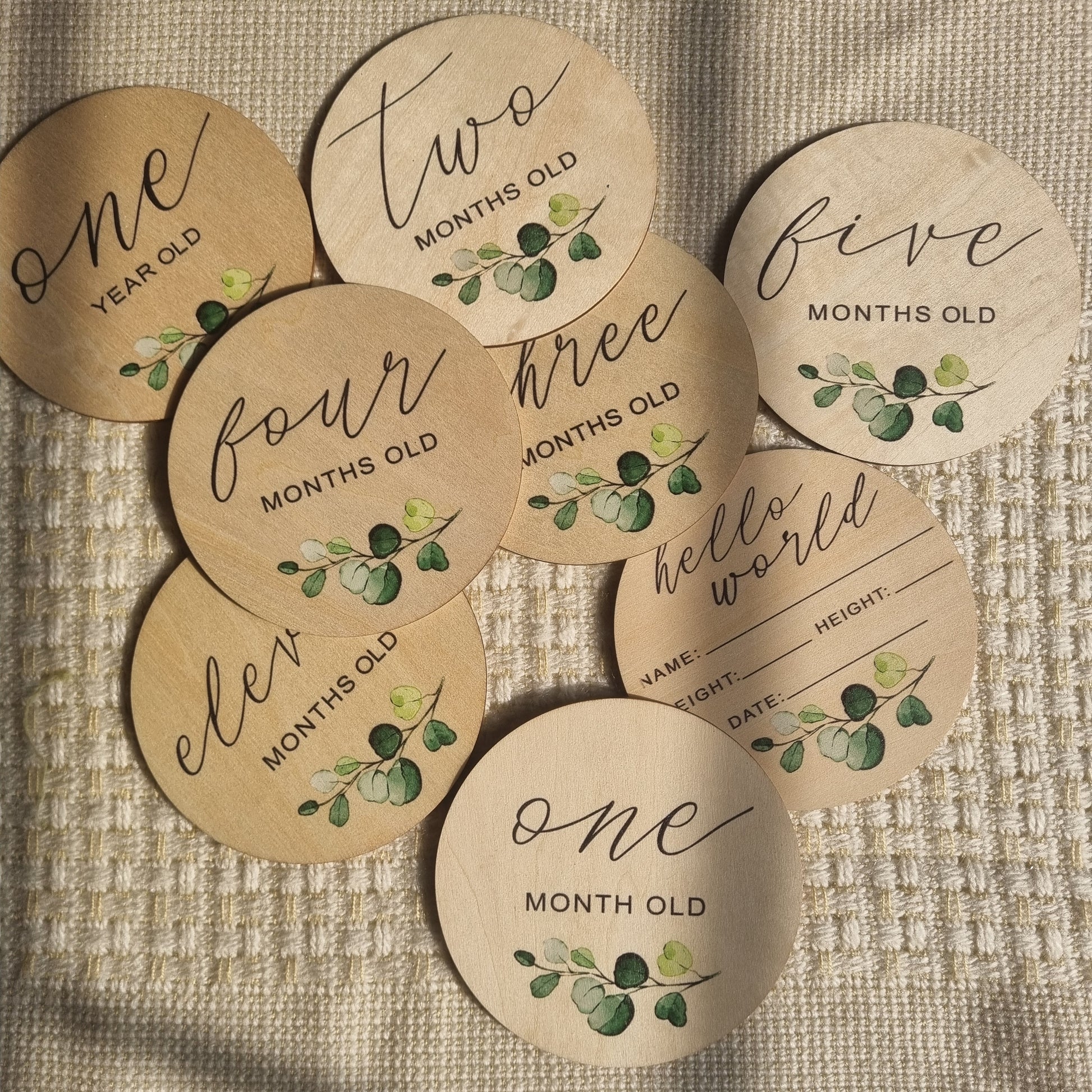 Botanical themed wooden baby milestone cards