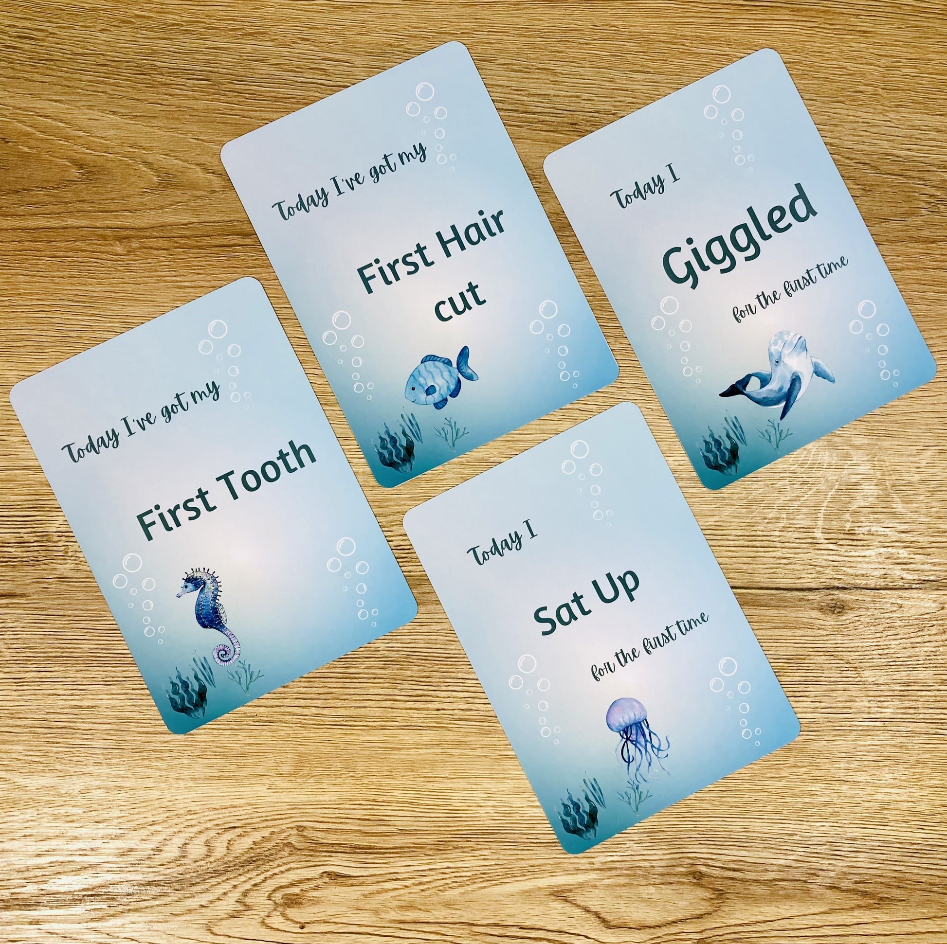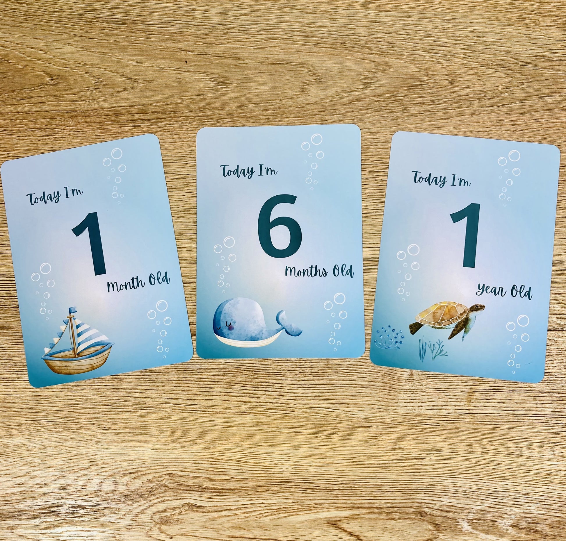 Bring the wonder of the ocean to your baby’s milestone photos with our adorable Sea World Baby Milestone Cards. Featuring playful sea creatures, soft ocean hues, and whimsical underwater designs, these cards turn every special moment – from the first smile to the first birthday – into a treasured keepsake.