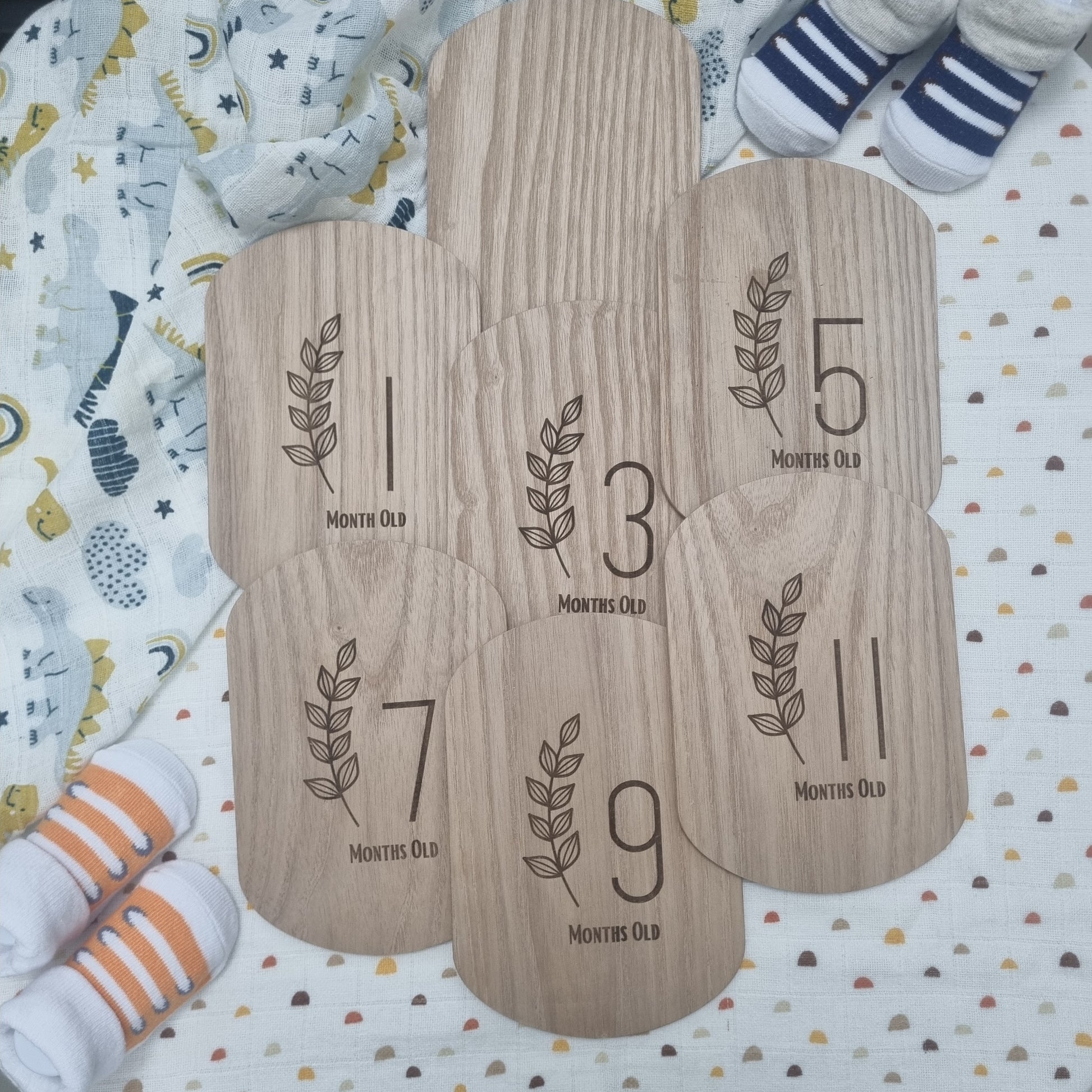 This set includes 7 beautifully oblong-shaped wooden cards, each featuring printed text on both the front and back, so you can mark multiple milestones with a single card. The neutral wooden finish complements any photo style—whether you’re snapping cozy at-home moments or professional milestone photos.